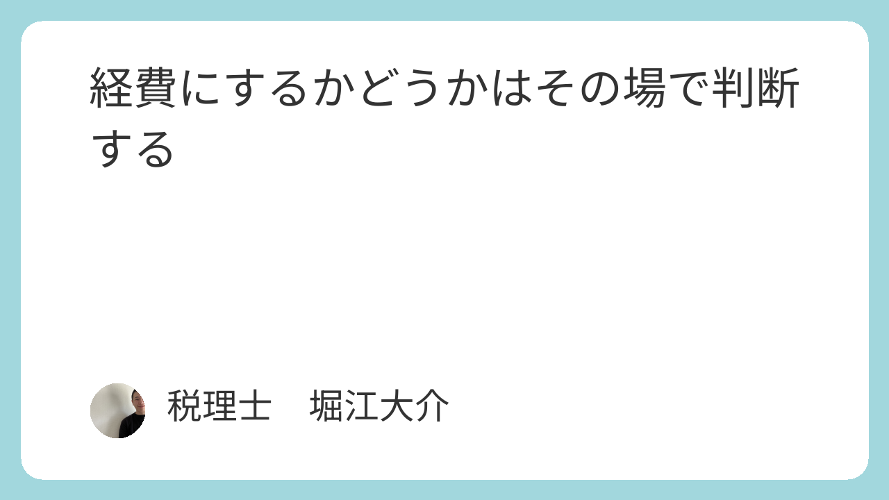 この点、経費にするかどうかの基準をあらかじめ持っておき、その場で判断するようにしたいものです。