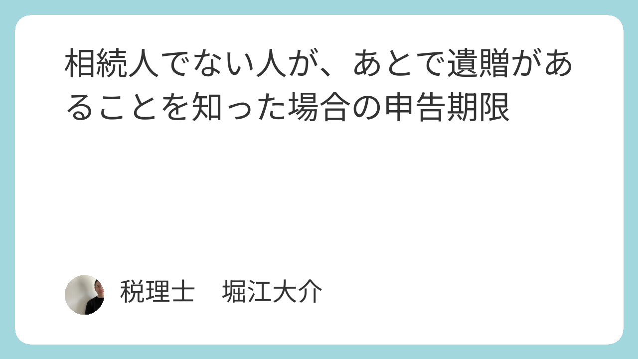 相続税の申告期限は「死亡日から10ヵ月以内」が原則ですが、あとになって「遺贈があることを知った」というケースもあります。