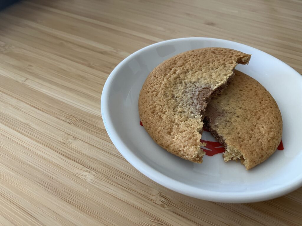 味は、例えるならカントリーマアムのバニラ味に、ふわっとりんごの香りや味が加わった感じでしょうか。