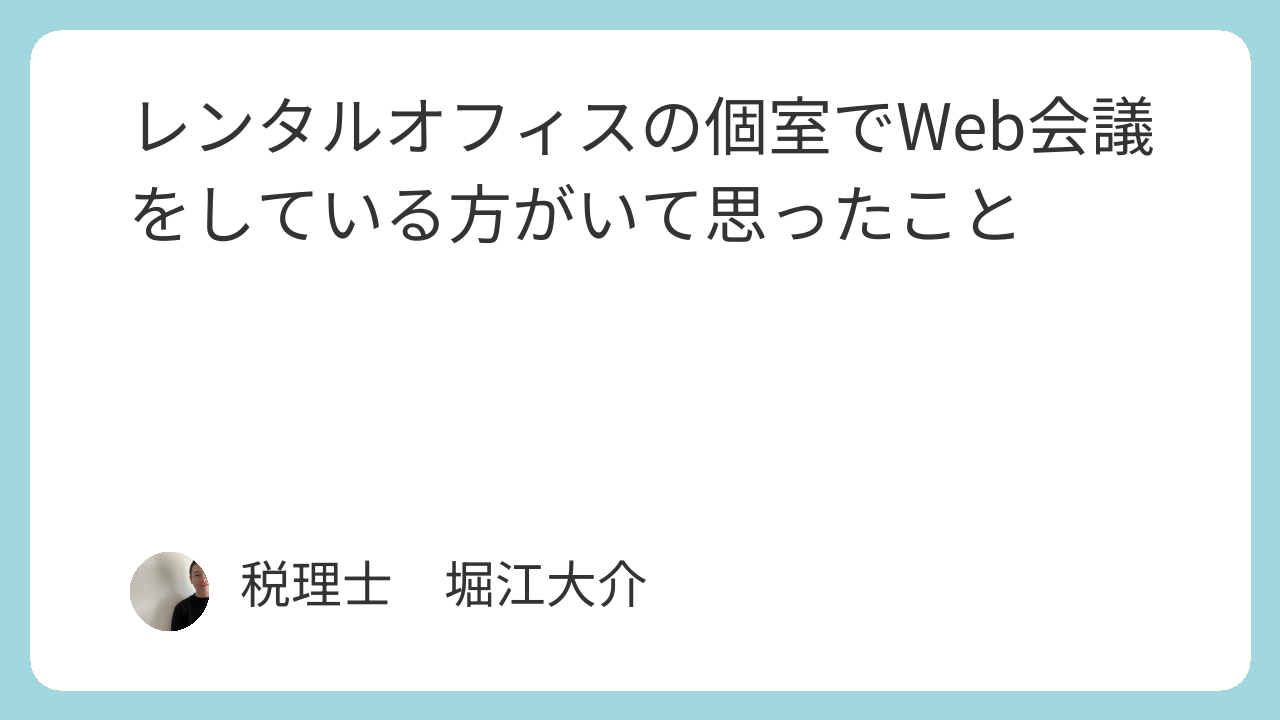 先日、そのレンタルオフィスの個室で仕事をしていたら、隣の個室の方がWeb会議を始めました。